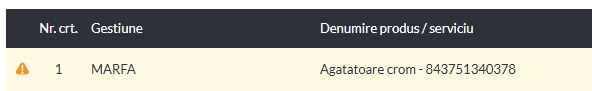 In fereastra de vizualizare/modificare a produsului marcat cu avertisment se afiseaza un mesaj cu detalii.