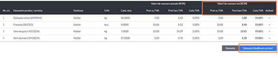 - Apasa Slaveaza modificari preturi pentru ca noile cote de TVA sa fie salvate.